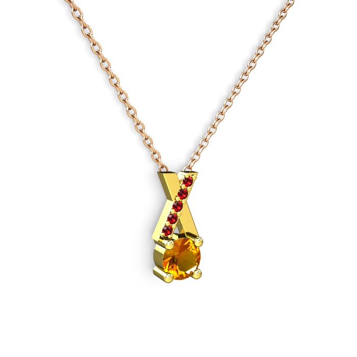 Sitrin ve garnet 925 ayar altın kaplama gümüş kolye (40 cm rose altın rolo zincir)