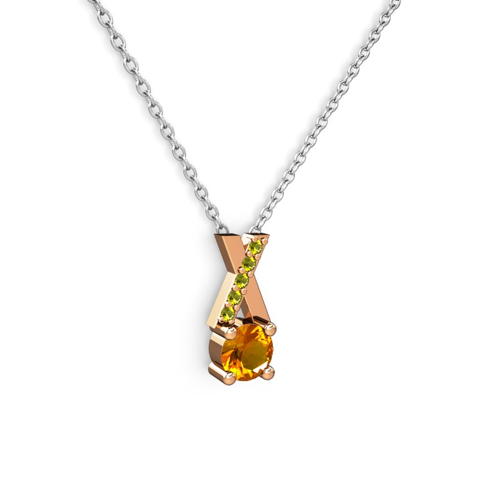 Sitrin ve peridot 8 ayar rose altın kolye (40 cm beyaz altın rolo zincir)