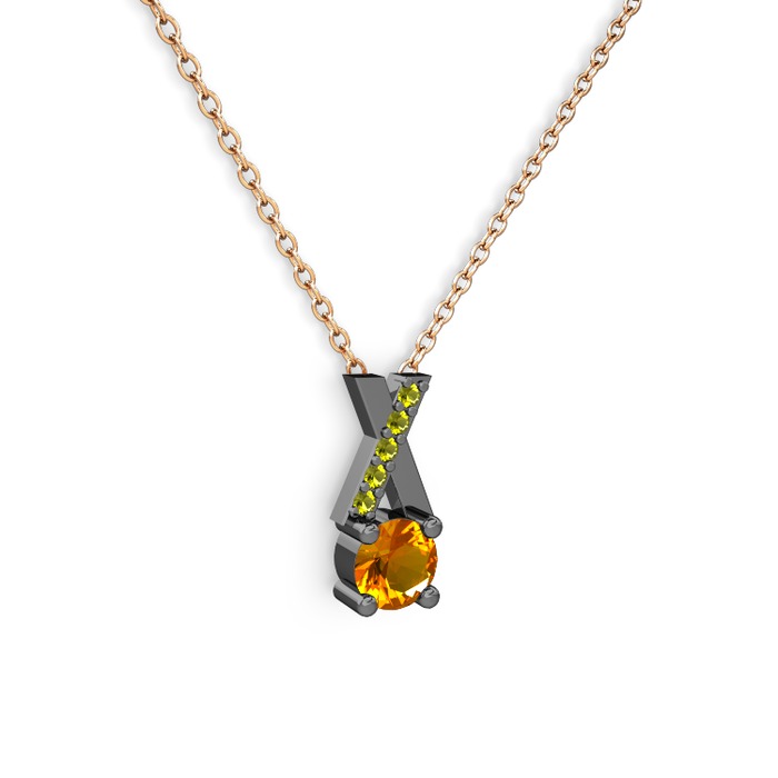 Sitrin ve peridot 925 ayar siyah rodyum kaplama gümüş kolye (40 cm rose altın rolo zincir)