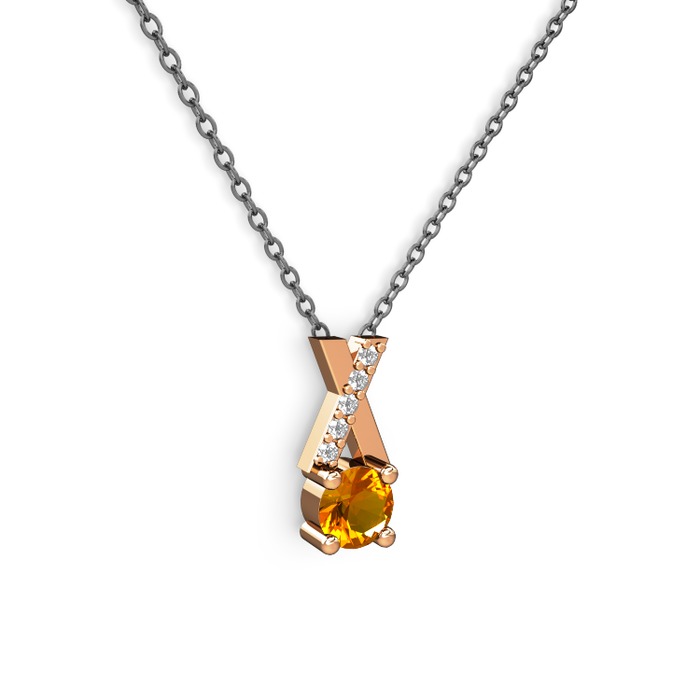 Sitrin ve pırlanta 8 ayar rose altın kolye (0.075 karat, 40 cm gümüş rolo zincir)