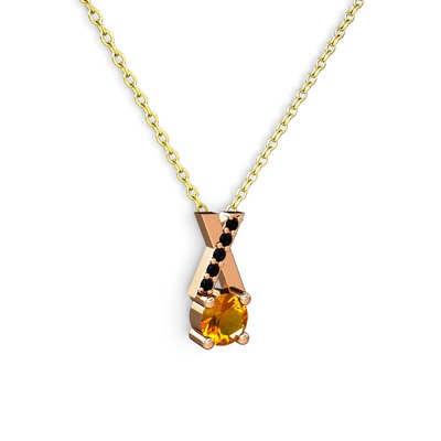 Sitrin ve siyah zirkon 18 ayar rose altın kolye (40 cm altın rolo zincir)