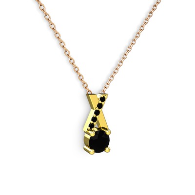 Siyah zirkon 14 ayar altın kolye (40 cm rose altın rolo zincir)