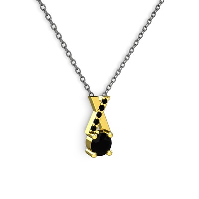 Siyah zirkon 8 ayar altın kolye (40 cm gümüş rolo zincir)