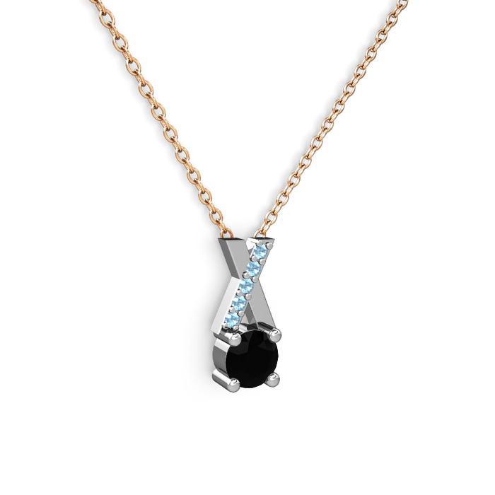 Siyah zirkon ve akuamarin 18 ayar beyaz altın kolye (40 cm rose altın rolo zincir)