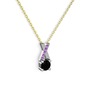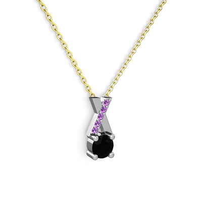 Siyah zirkon ve ametist 18 ayar beyaz altın kolye (40 cm altın rolo zincir)