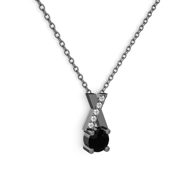 Siyah zirkon ve beyaz zirkon 925 ayar siyah rodyum kaplama gümüş kolye (40 cm gümüş rolo zincir)