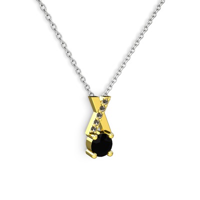 Siyah zirkon ve dumanlı kuvars 14 ayar altın kolye (40 cm beyaz altın rolo zincir)