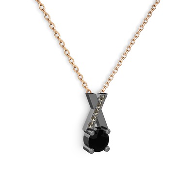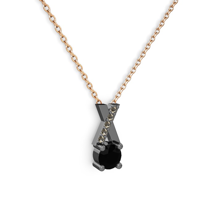 Siyah zirkon ve dumanlı kuvars 925 ayar siyah rodyum kaplama gümüş kolye (40 cm rose altın rolo zincir)