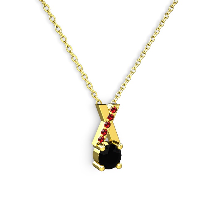 Siyah zirkon ve garnet 8 ayar altın kolye (40 cm gümüş rolo zincir)