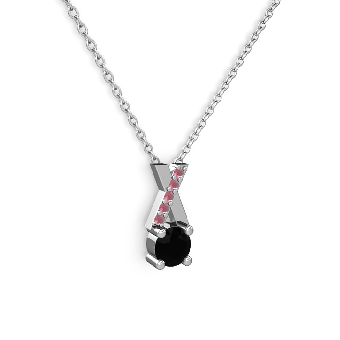 Siyah zirkon ve kök yakut 925 ayar gümüş kolye (40 cm beyaz altın rolo zincir)