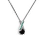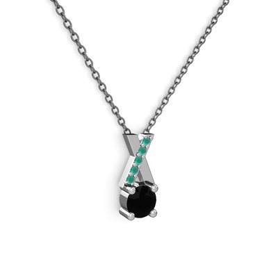 Siyah zirkon ve kök zümrüt 18 ayar beyaz altın kolye (40 cm gümüş rolo zincir)