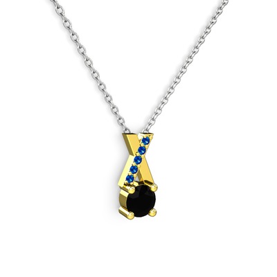 Siyah zirkon ve lab safir 18 ayar altın kolye (40 cm beyaz altın rolo zincir)