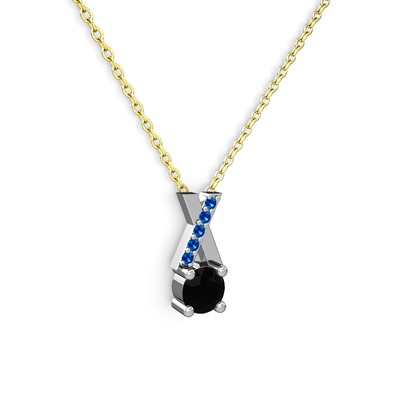 Siyah zirkon ve lab safir 925 ayar gümüş kolye (40 cm altın rolo zincir)