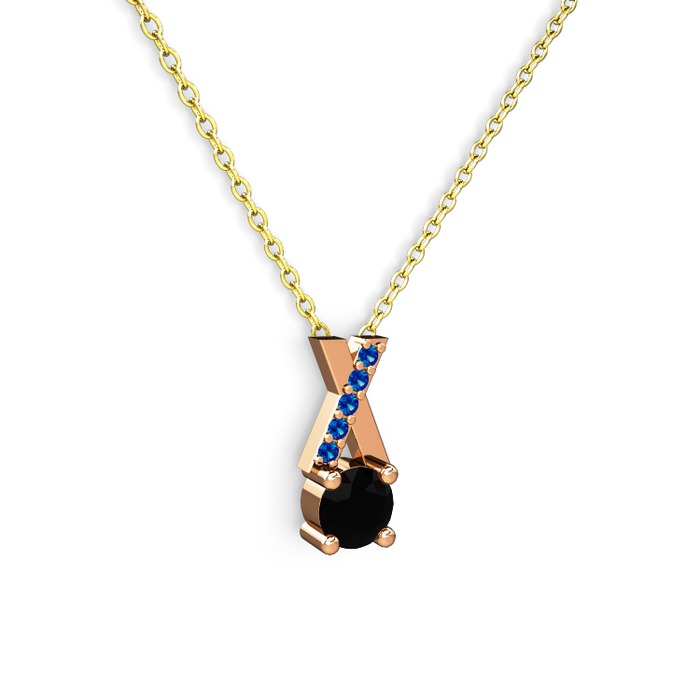 Siyah zirkon ve lab safir 925 ayar rose altın kaplama gümüş kolye (40 cm altın rolo zincir)