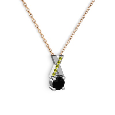 Siyah zirkon ve peridot 925 ayar gümüş kolye (40 cm rose altın rolo zincir)