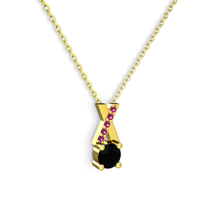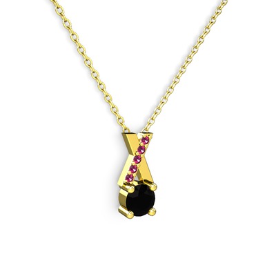 Siyah zirkon ve rodolit garnet 18 ayar altın kolye (40 cm altın rolo zincir)