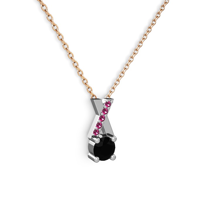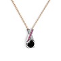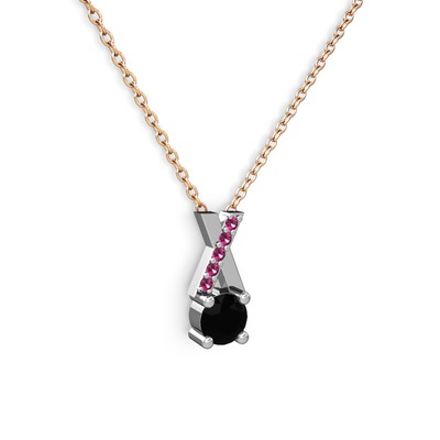 Siyah zirkon ve rodolit garnet 8 ayar beyaz altın kolye (40 cm rose altın rolo zincir)