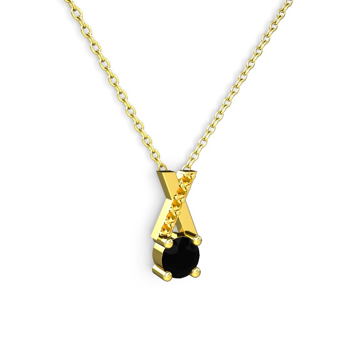 Siyah zirkon ve sitrin 925 ayar altın kaplama gümüş kolye (40 cm gümüş rolo zincir)