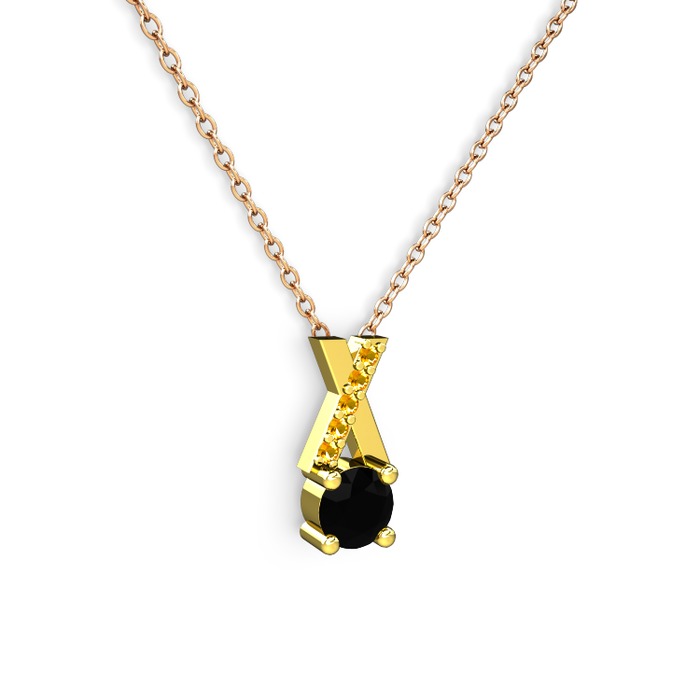Siyah zirkon ve sitrin 925 ayar altın kaplama gümüş kolye (40 cm rose altın rolo zincir)
