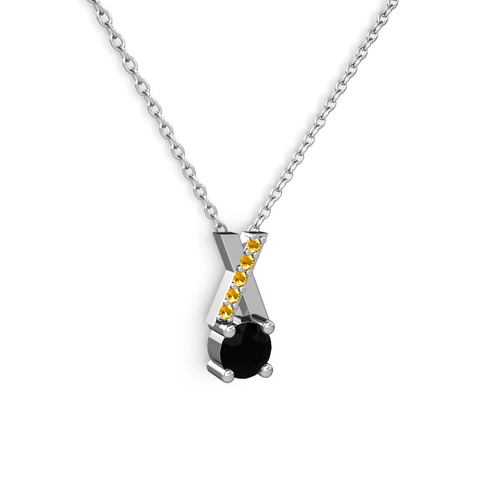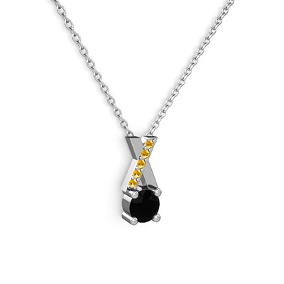 Siyah zirkon ve sitrin 925 ayar gümüş kolye (40 cm gümüş rolo zincir)