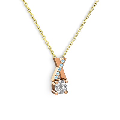 Swarovski ve akuamarin 18 ayar rose altın kolye (40 cm altın rolo zincir)