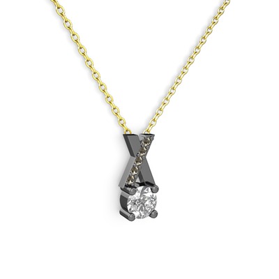 Swarovski ve dumanlı kuvars 925 ayar siyah rodyum kaplama gümüş kolye (40 cm altın rolo zincir)