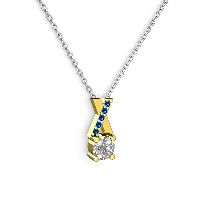 Swarovski ve lab safir 14 ayar altın kolye (40 cm gümüş rolo zincir)
