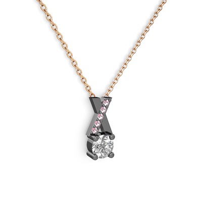 Swarovski ve pembe kuvars 925 ayar siyah rodyum kaplama gümüş kolye (40 cm rose altın rolo zincir)