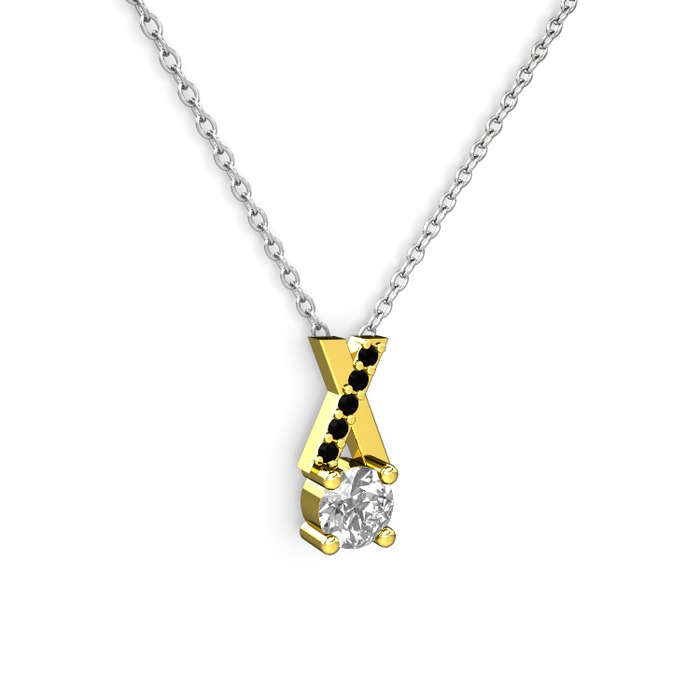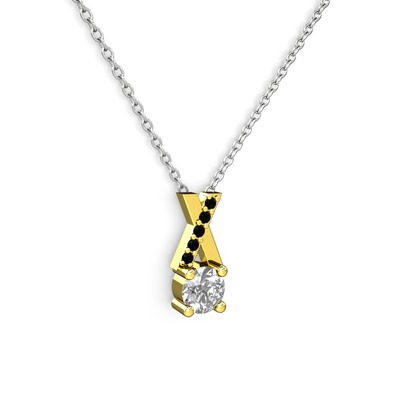 Swarovski ve siyah zirkon 8 ayar altın kolye (40 cm beyaz altın rolo zincir)