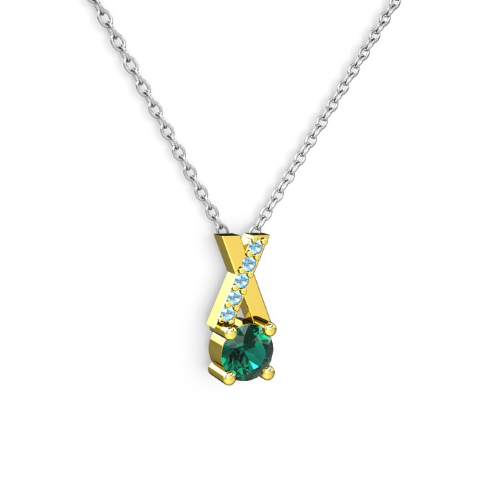 Yeşil kuvars ve akuamarin 8 ayar altın kolye (40 cm beyaz altın rolo zincir)