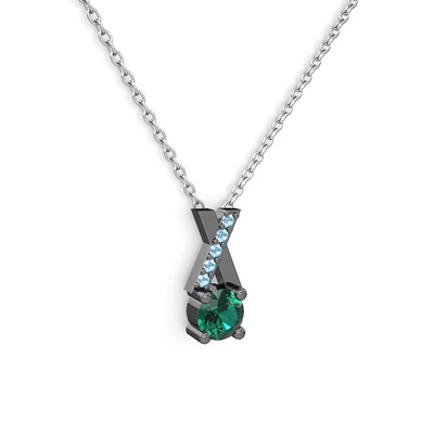 Yeşil kuvars ve akuamarin 925 ayar siyah rodyum kaplama gümüş kolye (40 cm beyaz altın rolo zincir)