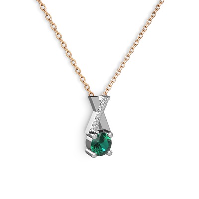 Yeşil kuvars ve beyaz zirkon 8 ayar beyaz altın kolye (40 cm rose altın rolo zincir)
