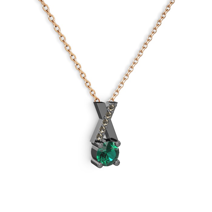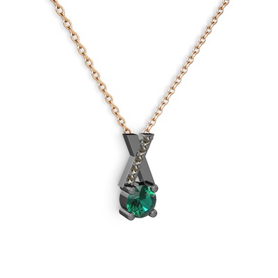 Yeşil kuvars ve dumanlı kuvars 925 ayar siyah rodyum kaplama gümüş kolye (40 cm rose altın rolo zincir)