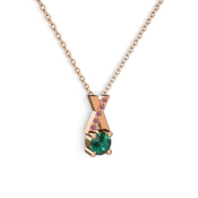 Yeşil kuvars ve kök yakut 925 ayar rose altın kaplama gümüş kolye (40 cm rose altın rolo zincir)