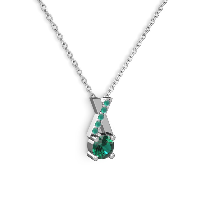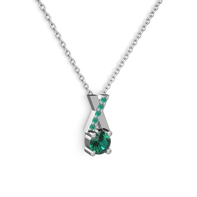 Yeşil kuvars ve kök zümrüt 14 ayar beyaz altın kolye (40 cm beyaz altın rolo zincir)