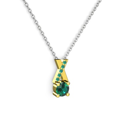 Yeşil kuvars ve kök zümrüt 925 ayar altın kaplama gümüş kolye (40 cm beyaz altın rolo zincir)