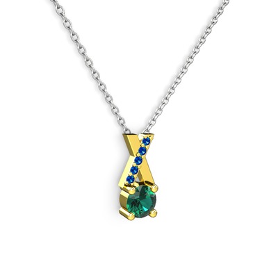 Yeşil kuvars ve lab safir 14 ayar altın kolye (40 cm beyaz altın rolo zincir)