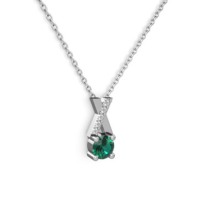 Yeşil kuvars ve pırlanta 14 ayar beyaz altın kolye (0.075 karat, 40 cm beyaz altın rolo zincir)