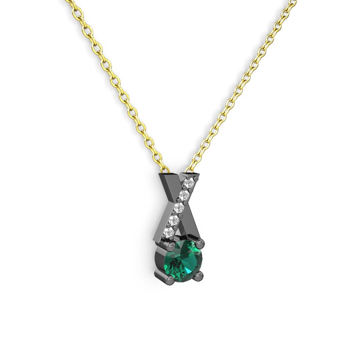 Yeşil kuvars ve pırlanta 925 ayar siyah rodyum kaplama gümüş kolye (0.075 karat, 40 cm altın rolo zincir)