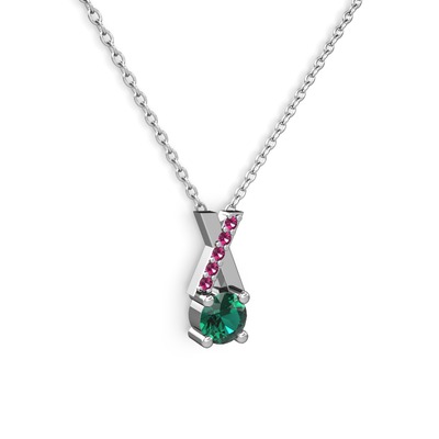 Yeşil kuvars ve rodolit garnet 18 ayar beyaz altın kolye (40 cm beyaz altın rolo zincir)