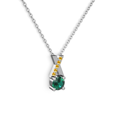 Yeşil kuvars ve sitrin 8 ayar beyaz altın kolye (40 cm beyaz altın rolo zincir)