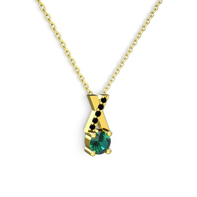 Yeşil kuvars ve siyah zirkon 925 ayar altın kaplama gümüş kolye (40 cm altın rolo zincir)