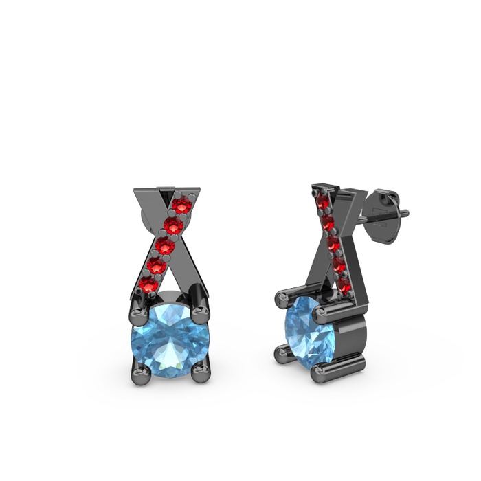 Akuamarin ve garnet 925 ayar siyah rodyum kaplama gümüş küpe