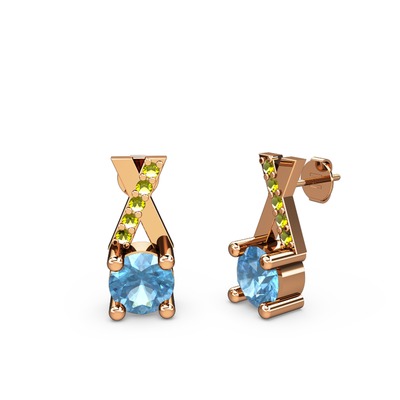Akuamarin ve peridot 14 ayar rose altın küpe