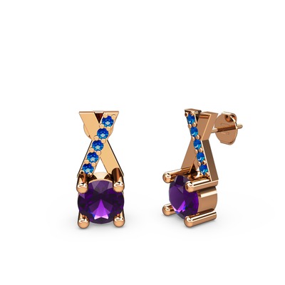 Ametist ve lab safir 8 ayar rose altın küpe