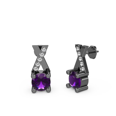 Ametist ve pırlanta 925 ayar siyah rodyum kaplama gümüş küpe (0.088 karat)