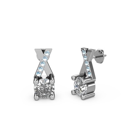 Beyaz zirkon ve akuamarin 925 ayar gümüş küpe