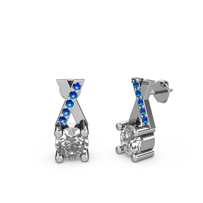 Beyaz zirkon ve lab safir 18 ayar beyaz altın küpe