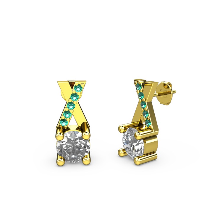Beyaz zirkon ve yeşil kuvars 8 ayar altın küpe