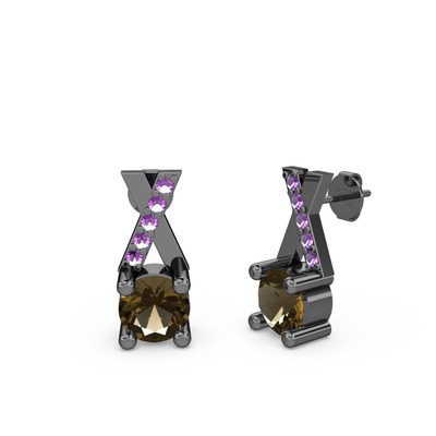 Dumanlı kuvars ve ametist 925 ayar siyah rodyum kaplama gümüş küpe